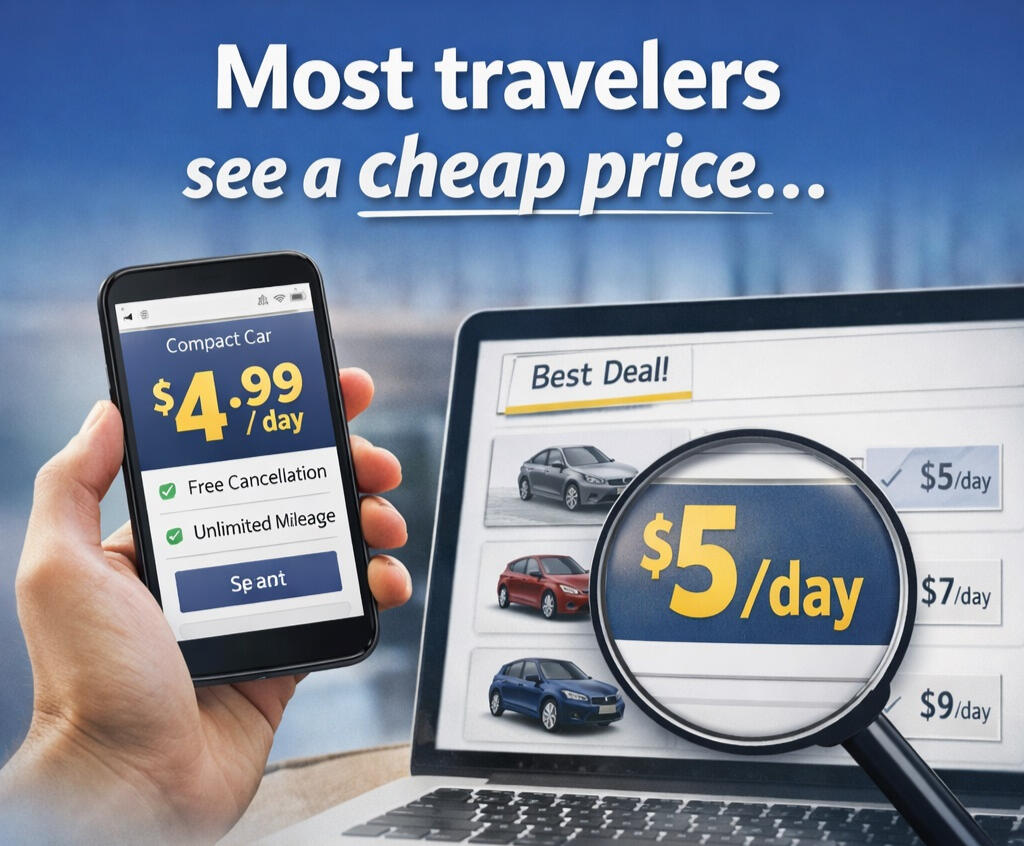 Most travelers search online and compare prices across different websites. They naturally choose the lowest option, assuming it reflects the total cost of the rental.