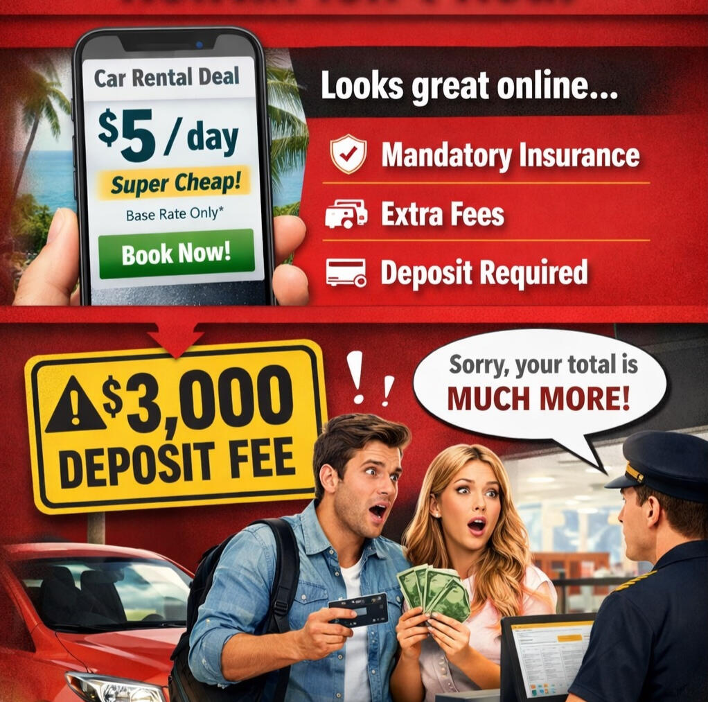 When they arrive at the rental counter, they are informed about required insurance, deposits, and additional charges. At that point, they have limited options — so they end up paying significantly more than expected.
